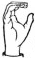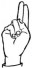 На ћирилици написано САНДРА ИВАНАЦ састоји се из 12 слова [?]. Исписано ћириличном једноручном азбуком за глувонеме: